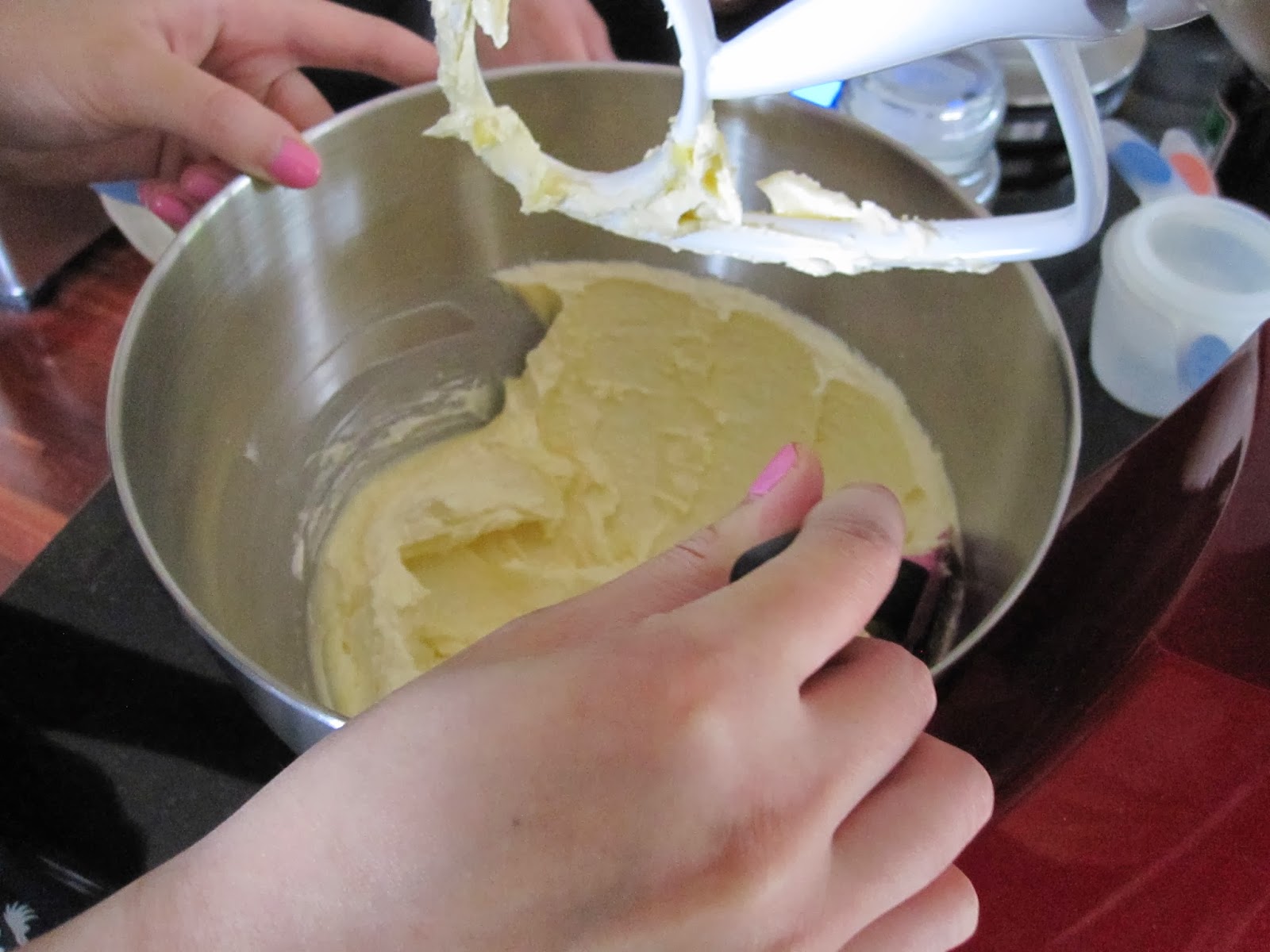 hand held mixer, cream together the butter, vanilla and sugar for about 5